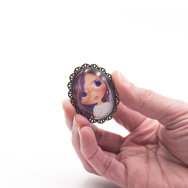 🌟 Composition : Cabochon en verre / Métal couleur bronze