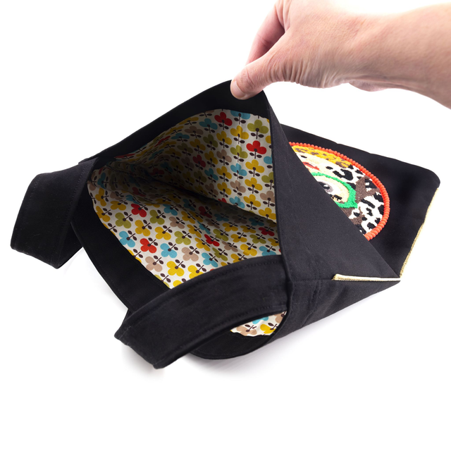 🪡 100% Fait-main. La face arrière du motif en punch needle est recouverte d'un entoilage. Ensuite, l'ensemble du sac est entièrement doublé à l'intérieur.